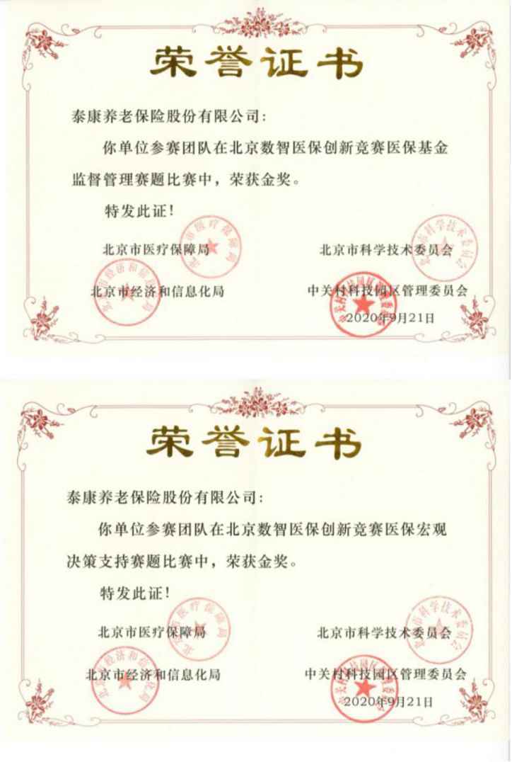 泰康養老包攬首屆北京數智醫保創新競賽雙項金獎