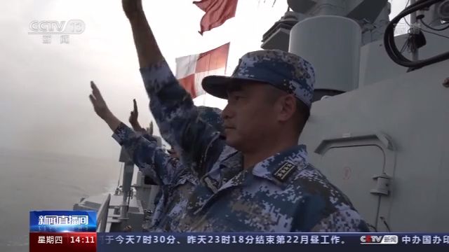 將“振華27”號護送到指定海域之後,兩批護航編隊組織了簡短的分航儀式。
