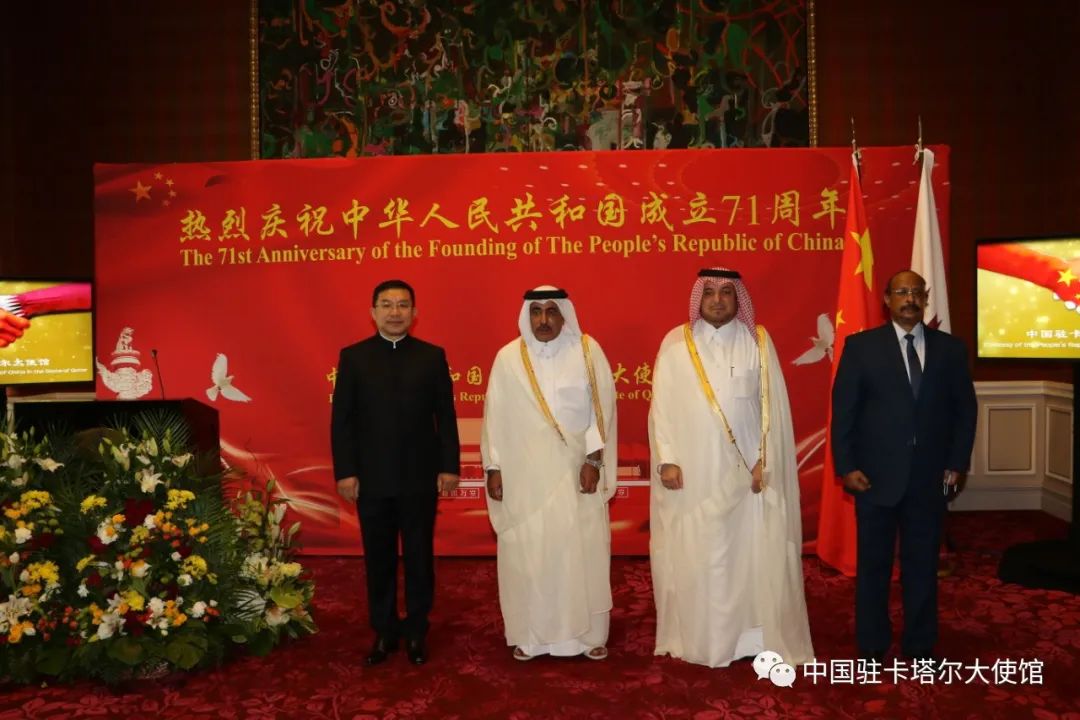9月22日上午,中國駐卡塔爾大使館舉行“雲端”盛會,熱烈慶祝中華人民共和國成立71週年。卡塔爾交通與通訊大臣蘇萊提,外交部禮賓司司長法赫魯、亞洲司司長哈立德,駐卡外交使團長、厄立特里亞駐卡大使艾哈邁德等現場出席小型慶祝活動。卡政府官員、各界友好人士、各國駐卡使節,在卡中資企業、華僑華人、留學生代表,以及中外媒體記者線上出席慶祝活動。