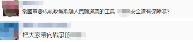 也有網友説,當台軍變成民進黨當局欺騙人民、騙選票的工具時,台灣安全還有保障嗎?↓