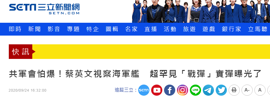 台灣“三立新聞網”:共軍會怕爆!蔡英文視察海軍艦 超罕見“戰彈”實彈曝光了↓
