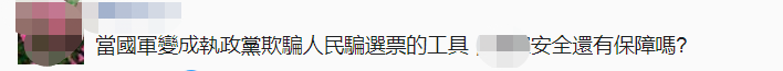 也有網友説,當台軍變成民進黨當局欺騙人民、騙選票的工具時,台灣安全還有保障嗎?↓
