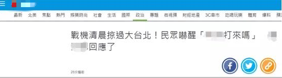 中時新聞網提到,今天,島內網民常用的論壇“批踢踢實業坊”(簡稱PTT)被一連串“戰機”帖子洗版,網民紛紛發表“戰機高速掠過台北市區”、“戰機高速掠過台北市區”、“‘總統府’上空戰機呼嘯而過好幾趟”、“哇靠!大安區飛過戰機!!”“台北人是不是平時沒看過戰機啊?”等帖文,討論極為熱烈。