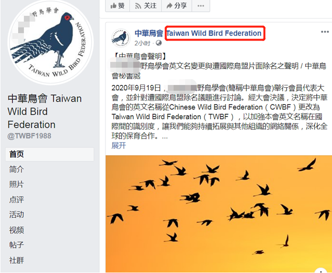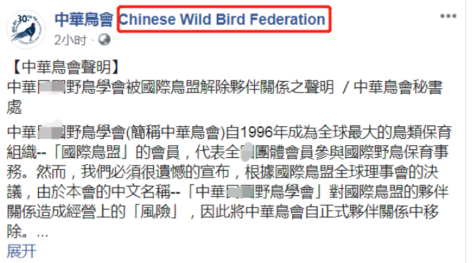 又搞小動作!被國際鳥盟除名的“中華鳥會”改英文名,Chinese變Taiwan