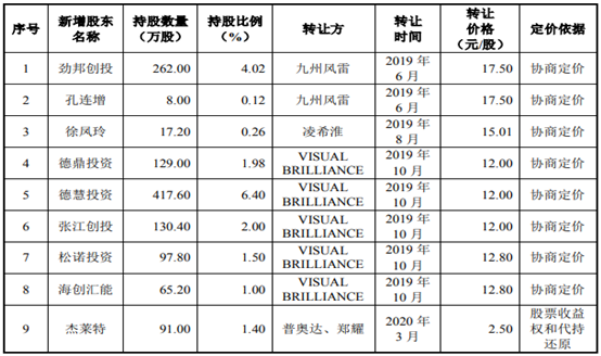 主要股權受讓方中的廣州德鼎創新投資有限公司,其持股95%的股東為自然人李廣新;廣州德慧股權投資合夥企業(有限合夥)成立於2019年10月30日,而這家機構接受VISUAL BRILLIANCE轉讓股份也是在2019年10月,這隻基金的基金管理人為“深圳德慧九方投資管理中心(有限合夥),其控股股東同樣是李廣新。