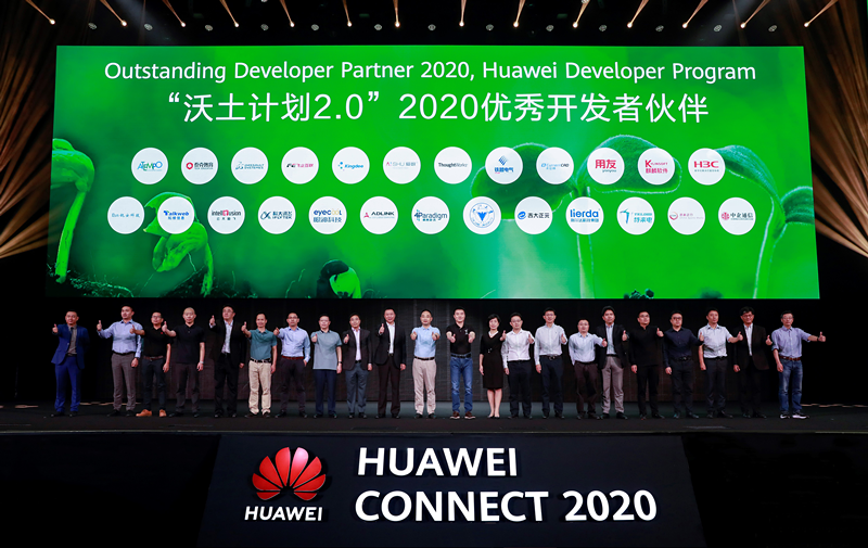 華為雲業務總裁鄭葉來、華為計算產品線總裁鄧泰華,共同揭曉了20家“沃土計劃2.0”2020年度優秀開發者夥伴。