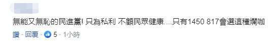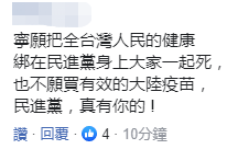對於民進黨當局此舉,有島內網友在台媒評論區留言稱,“寧願把全台灣民眾的健康,綁在民進黨身上大家一起死,也不願買有效的大陸疫苗,民進黨,真有你的 !”“無能又無恥的民進黨! 只為私利,不顧民眾健康….只有1450、817會選這種爛咖。”
