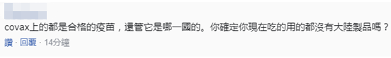 還有網友説,“covax上的都是合格的疫苗,你確定你現在吃的用的都沒有大陸製品嗎?”