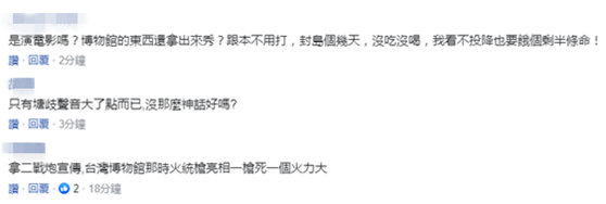 對此,有島內網友嘲諷,“拿二戰炮宣傳”“是演電影嗎?博物館的東西還拿出來秀?”“只有聲音大了點而已,沒那麼神話好嗎?”