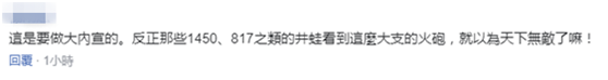 也有網友稱,“這是要做大內宣的,反正那些1450、817之類的井蛙看到這麼大支的火炮,就以為天下無敵了嘛!”
