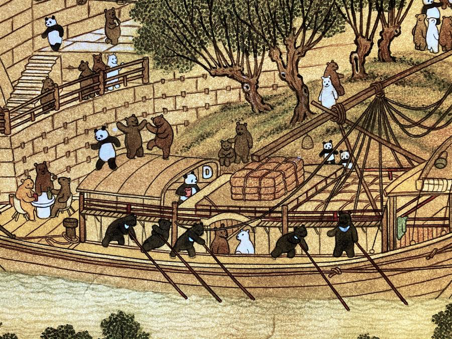 這兩天,不少台媒在炒作台北地下街位於京站和北捷連通道的一幅廣告圖,不少人對它的畫風感到熟悉,因為它和《清明上河圖》有點相似。台灣“中時新聞網”稱,作品中不僅出現了黑熊,還有大熊貓、棕熊等等,圖中在勞動的全是“台灣黑熊”。