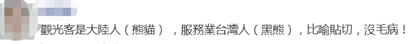 也有島內網友説,其實“熊熊上河圖”也沒錯,觀光客是大陸人(大熊貓),提供服務的是台灣人(黑熊),比喻貼切,沒毛病。↓
