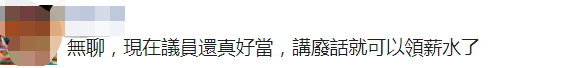 還有網友説,真無聊,現在台灣議員真好當,講廢話就可以領薪水了。↓