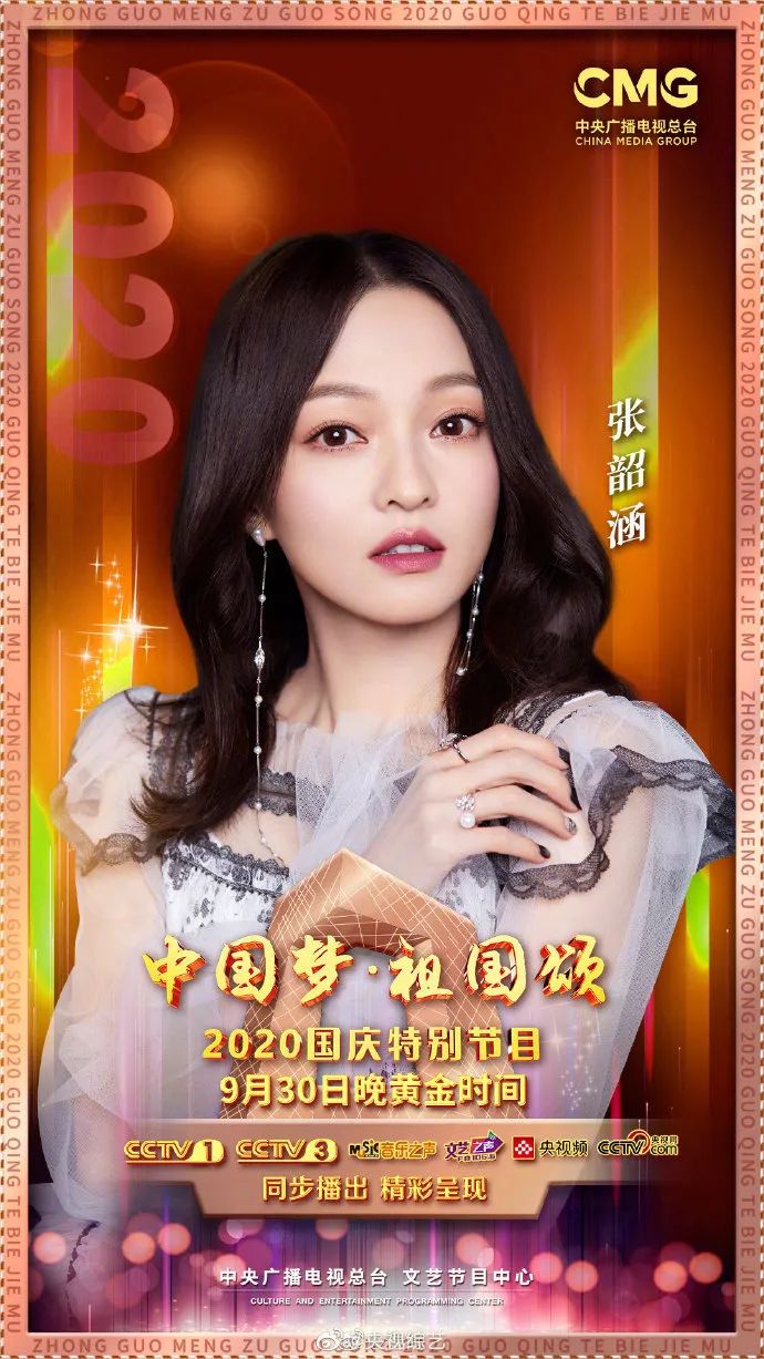 國慶節將至,歐陽娜娜、張韶涵出現在央視公佈的國慶晚會表演名單中。根據中央電視台綜藝頻道官方微博@央視綜藝 發佈的預告片,歐陽娜娜將與香港、大陸藝人合唱《我的祖國》,張韶涵也將在該晚會與其他藝人合唱抗疫宣傳歌曲《守護》。