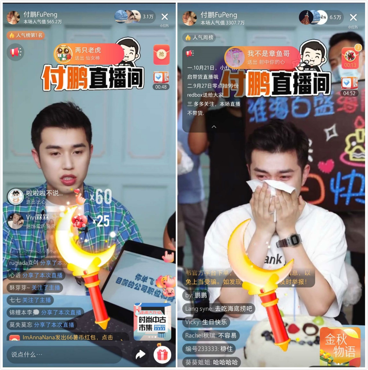 在直播間付鵬也度過了自己的生日,當27日0點到來,他的搭檔康康獻上現場親手製作的蛋糕,現場小紅書的工作人員等一起為其唱起生日歌,氛圍十分温馨感人。