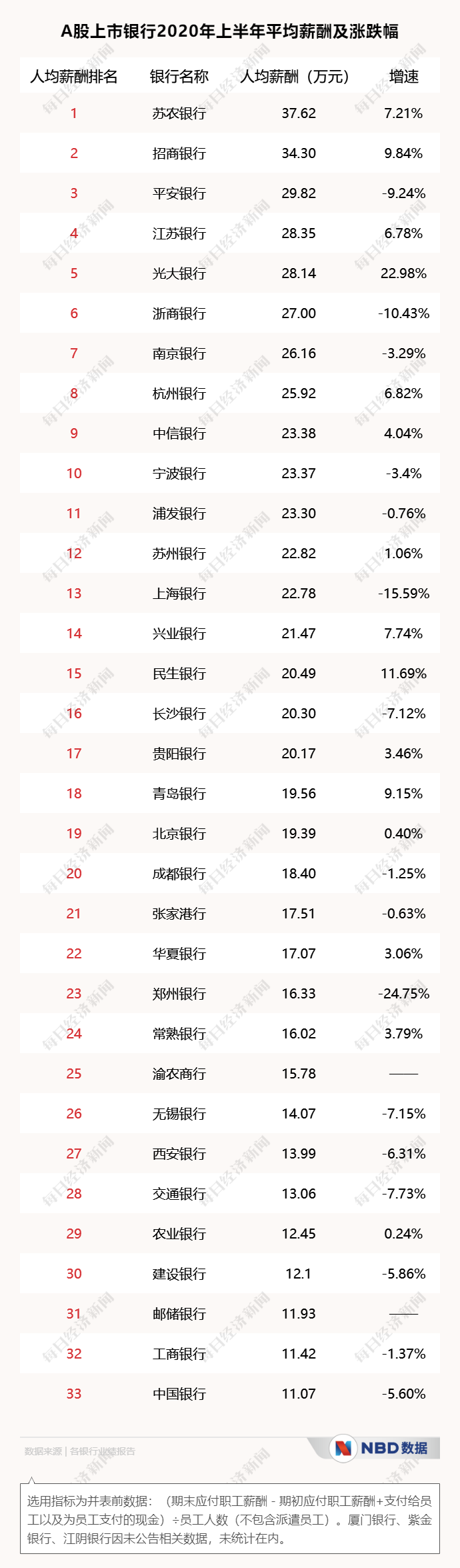 銀行到底降薪沒?上市銀行上半年平均薪酬排行榜出爐,這家農商行奪冠,而國有大行下滑明顯
