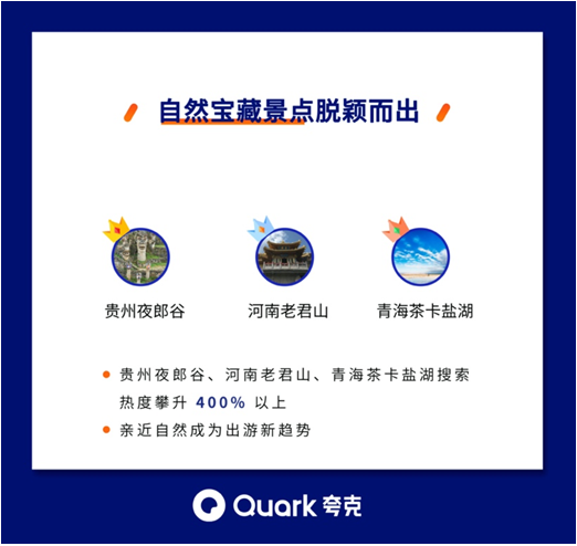 受制於境外各國依然嚴峻的新冠疫情形勢,今年人們基本絕緣於五花八門的境外遊,進而將目光聚焦於國內各種寶藏自然風光上:其中,貴州夜郎谷、河南老君山、青海茶卡鹽湖搜索熱度攀升400%以上,親近自然成為出遊新趨勢。當魔幻的2020年對世界施以重拳之時,人們更相信能在大自然的脈搏中尋得內心的棲息和療愈。