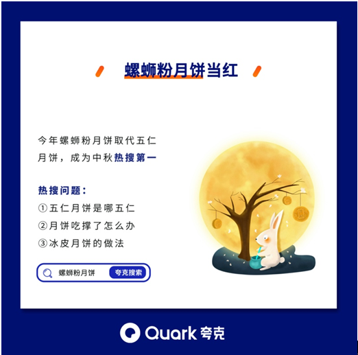 值得注意的是,國慶撞上中秋,還惹得某些食物一夜躥紅。夸克大數據顯示,今年來火遍全國的螺螄粉終於對月餅下手了,8月以來,螺螄粉月餅的搜索量已超過曾經的“網紅”五仁月餅成為中秋熱搜第一。是黑暗料理還是創意美食?不少網友躍躍欲試,期待節日裏的新味道帶給生活新的樂趣。