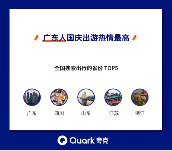 “出遊放飛”的選擇在後疫情時代假期顯得格外治癒。其實,早在離十一還有一個多月的8月中旬,網友們的心就已蠢蠢欲動,國慶出行的搜索量一度達到了峯值。在全國搜索出行省份的排名裏,廣東人以最大熱情名列第一,四川、山東、江蘇、浙江也擠進了前五。