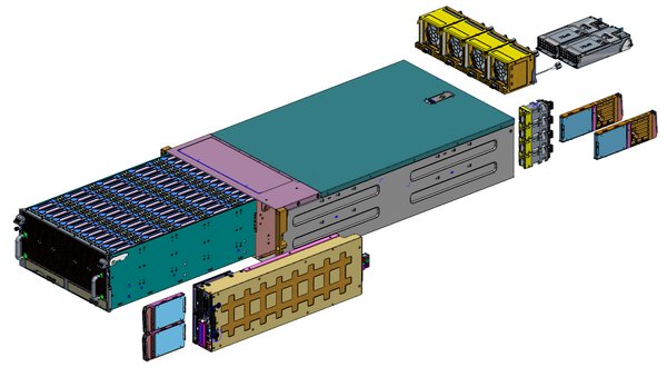 該機型基於全新一代英特爾可擴展處理器打造,在4U的機架空間內進行模塊化設計,容量來看可以支持60個3.5 機械硬盤,及4個2.5 SATA /NVMe SSD,並且可內置2個M.2 SSD,容量最高可達1PB/台,滿足視頻、文件等大容量數據存儲的業務需求。