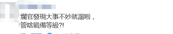 還有島內網友説, 隨時準備逃跑的人是不會去注意戰備等級的。↓