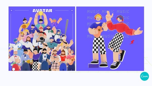 2020年中旬,Canva中國的設計團隊原創了“可愛娃”人物組件。這套人物組件總共可拼成72,240種姿勢各異的人像插畫。此外,Canva設計師還準備了同系列的環境組件,如室外的樹、燈、建築,室內的家居、電子設備、桌椅等要素。“可愛娃”套系色彩突出,可拼貼的特性用來演示團隊合作,十分恰當;一經推出,立刻被北京大興機場採用。8月份,Canva中國還推出了由頭、身、腿,以及各種物品組成的立體三維的可愛娃,不用建模、貼材質、烘焙、渲染,像拼樂高、捏娃娃一樣就可以組合出豐富的人物場景。