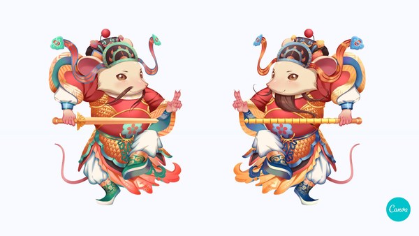 畢業於北京電影學院漫畫專業的趙政,是Canva武漢辦公室的手繪插畫師。2020年,他為中國春節繪製了門神海報,一經推出,就獲得用户的喜愛。趙政主攻中國風和水彩畫,有時會直接針對市場活動而創作。除趙政外,Canva中國還有兩位插畫師和支持團隊,一起擔當原創插畫。當素材和人手不夠時,就會視情況引進、原創或採買素材。