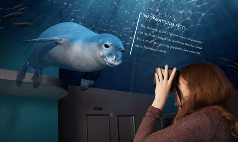 AI直播平台在技術架構實現上不僅可以實現大小屏多終端自適配, 還可以適配遠舢MR 產品應用, 當用户戴上 MR 眼鏡,會在眼前全息展現海洋環境和周圍海洋生物,用户可通過手勢操作進行縮放、旋轉、點擊查看等互動行為,感受海洋周圍環境的變化和觸手可及的海洋生物。