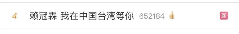賴冠霖“我在中國台灣等你”此言一出,今天(1日)下午很快就上了微博熱搜。↓