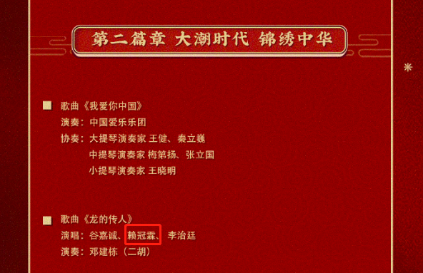 歐陽娜娜張韶涵之後,賴冠霖剛剛在央視唱《龍的傳人》
