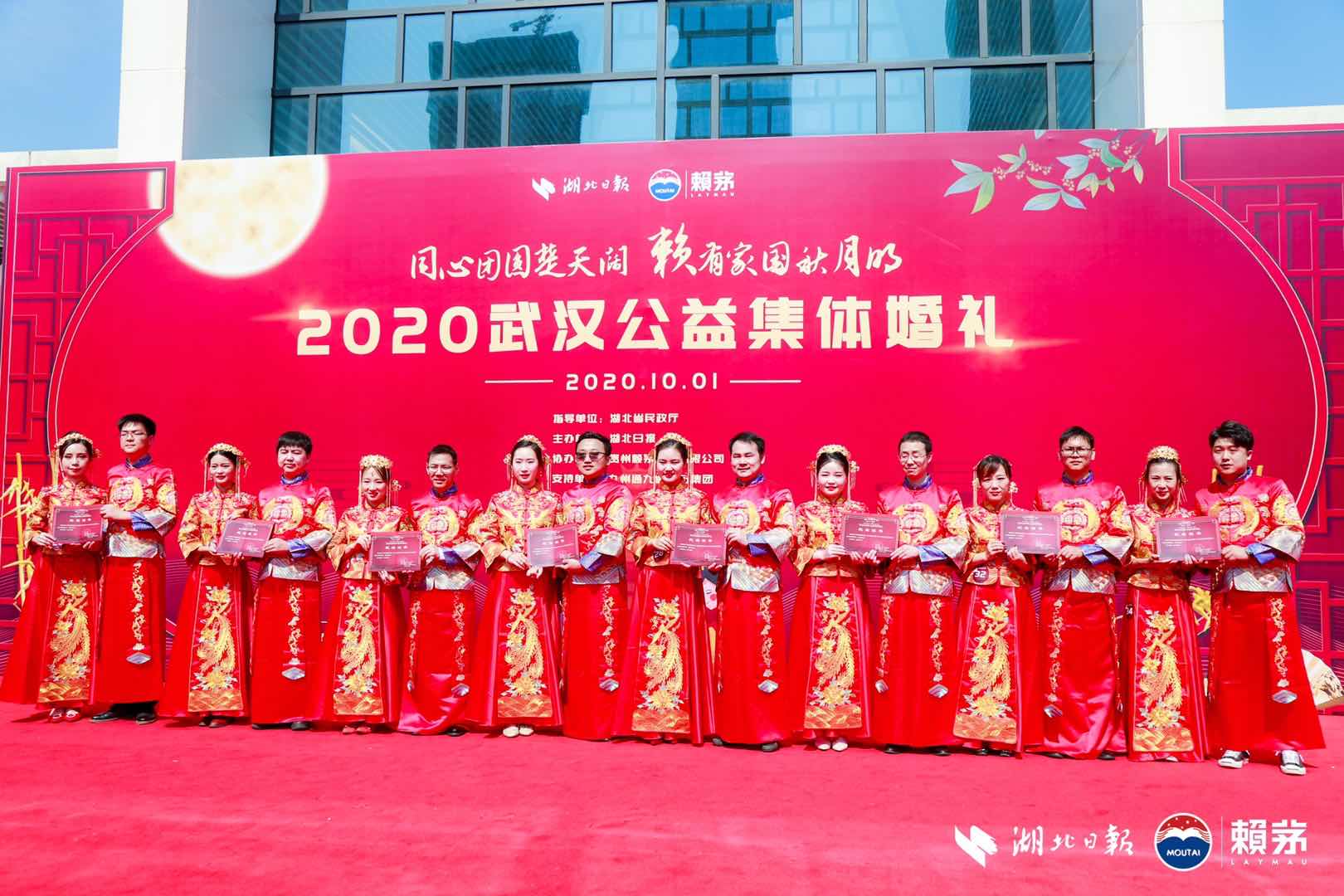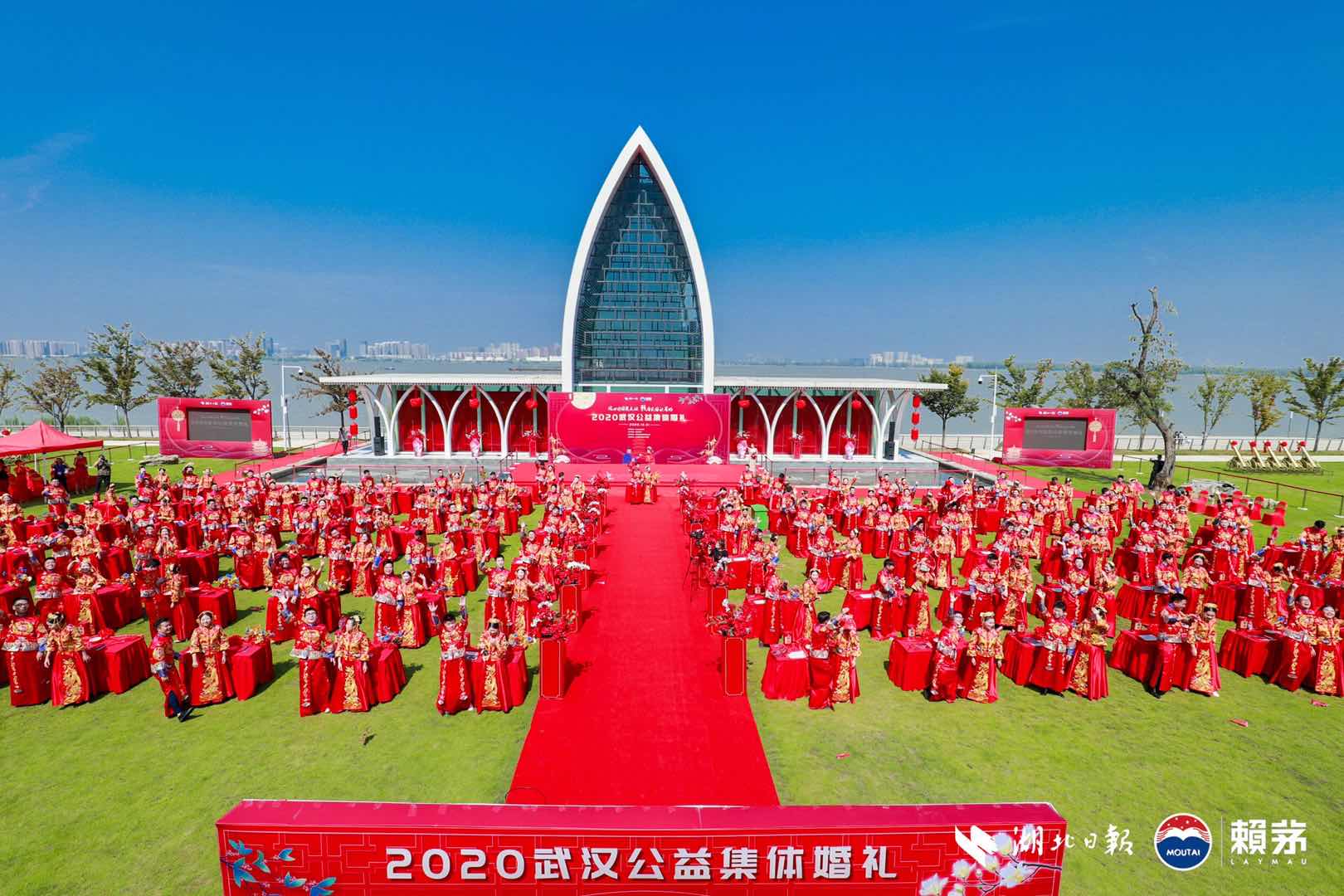 “同心團圓楚天闊 賴有家國秋月明”2020武漢公益集體婚禮由湖北省民政廳指導、湖北日報主辦、貴州賴茅酒業有限公司協辦,是疫情過後,武漢重啓後民間最大的一場集體婚禮。集體婚禮自9月10日面向全國啓動新人徵集以來,受到了社會各界的廣泛關注和網友的一致認可。在短短十天的時間裏,集體婚禮就收到了來自全國各地9754對新人的踴躍報名,反響十分熱烈。據瞭解,湖北省和武漢市的報名新人佔比較大,北京、廣東、福建、廣西、湖南、上海、重慶、海南、江蘇、新疆等地均有新人報名。主辦方根據報名順序和資料提交的完整性進行篩選,最終共有99對新人入選,參與到了這場公益集體婚禮中。