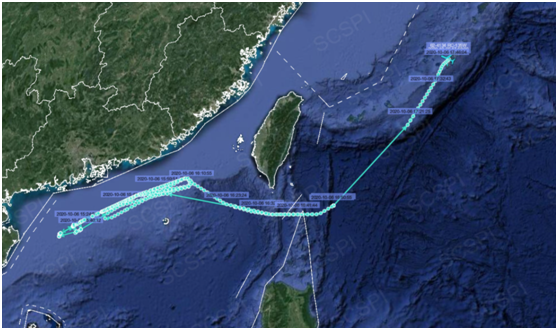 據“南海戰略態勢感知”計劃平台10月7日發佈的消息,10月6日,兩架美軍偵察機出現在南海上空。從飛行路線圖上看,其中一架美國空軍RC-135W偵察機途徑巴士海峽進入南海,隨後緊貼廣東省海岸飛行,一度飛至海南島東部海域後原路折返;另一架美國海軍EP-3E電子偵察機途徑巴士海峽進入南海後,在台灣西南部海域上空開展密集飛行活動。