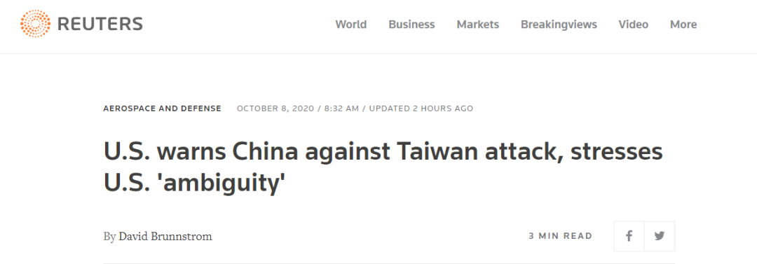 路透社指出,奧布萊恩指的是美國長期以來在是否會介入保護台灣問題上的“戰略模糊”政策。美國的法律要求美國向台灣提供自衞手段,但美國並沒有明確表示,如果中國發動攻擊,美國是否會進行軍事幹預。