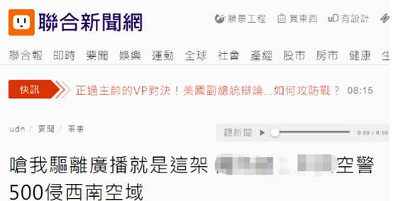 台防務部門昨晚通報空警-500現身台灣西南空域,台媒:就是向台軍喊話的那架