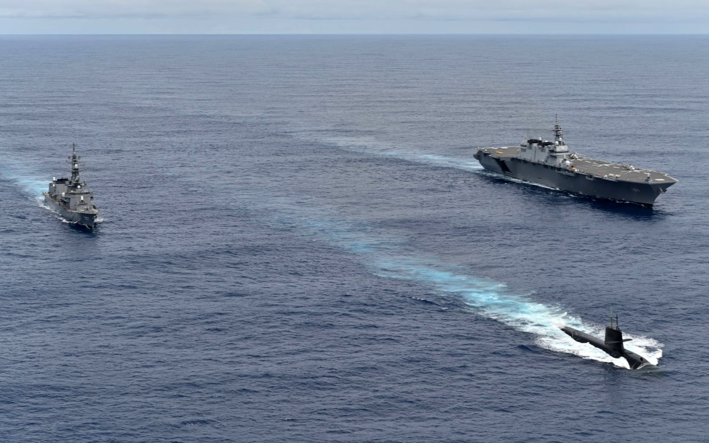 日本最大“準航母”現身南海還帶潛艇進行反潛演練