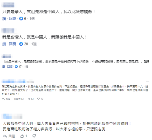 對於民進黨當局的這番回應,以及來自台灣陸委會的威脅,許多島內網友紛紛力挺陳廷寵,“我是台灣人,就是中國人”。↓