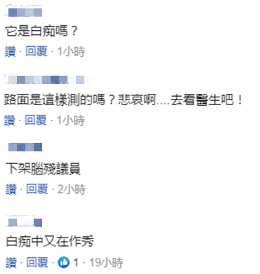 還有網友在台媒評論區留言,“他是白痴嗎?”“路面是這樣測的嗎?悲哀啊…去看醫生吧!”也不乏有人批評陳致中“作秀”,呼籲“下架腦殘議員”。
