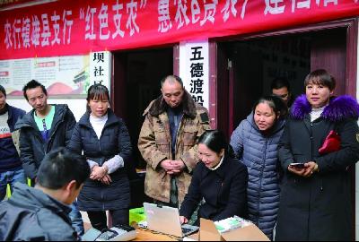 雲南昭通鎮雄縣也是全國52個未脱貧縣之一。在農業銀行黨委副書記、監事長王敬東的掛點指導下,農業銀行雲南分行制訂了《脱貧攻堅之鎮雄行動計劃(2019-2020)》,提出“以黨建工作引領全局”的工作思路,統籌推進脱貧攻堅工作的開展。農業銀行鎮雄縣支行黨委班子進村入户、深入帶貧企業開展調研20餘次,及時研究貧困村的現實困境,整鄉推進扶貧小額貸款的發放和普惠金融政策落地實施。該行全面落實黨委脱貧攻堅主體責任,實施了“機關部門與營業網點一對一掛鈎,分片包乾、整村推進”的制度,優先安排金融產品投放給更貧困的行政村。