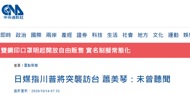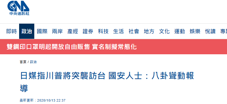 “中央社”還引用台灣“國安”人士的説法稱,若對日本媒體生態有所瞭解,都會知道《夕刊富士》是以八卦聳動而聞名的小報,而且美國大選剩下不到一個月,其國內各政治陣營都在做最後衝刺,更不可能有“訪台”時間。