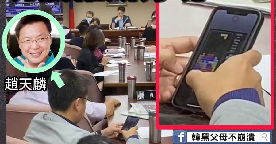 臉書粉絲專頁“韓黑父母不崩潰”也發文表示,“看清楚這就是我們高雄的‘立委’”,並批趙天麟在“國會殿堂”大玩“俄羅斯方塊”,完全不管台上美豬的審議、完全不顧高雄市民和台灣人民的健康,並表示要“好好的幫他高調”。
