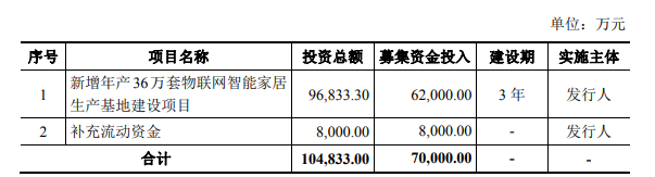 此次IPO,王力安防募集資金之一是“新增年產36萬套物聯網智能家居生產基地建設項目”投資總額9.68億元,募集資金投入6.2億元,建設期三年。公司稱,建成後年均營業收入可達21.6億元,年均淨利潤可達23727萬元。