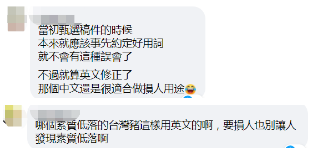 還有島內網友諷刺“農委會”,就算修正了英語,中文還是“台灣豬”,“很適合損人用”。↓