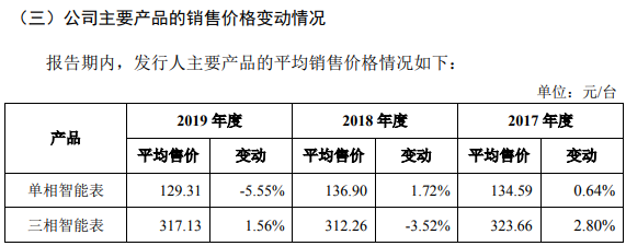 再來看財務數據,根據招股書披露,西力科技的單相智能表在2019年的收入比重達59.63%,同年單相智能表的銷售單價為108.73元/只,相比2018年的103.81元/只並未出現明顯增加。而與此同時,公司的單相智能表產品2019年的毛利率達33.98%,相比2018年的22.07%大幅增加,這指向公司的單相智能表產品單位生產成本在2019年同比下降了15個百分點左右。