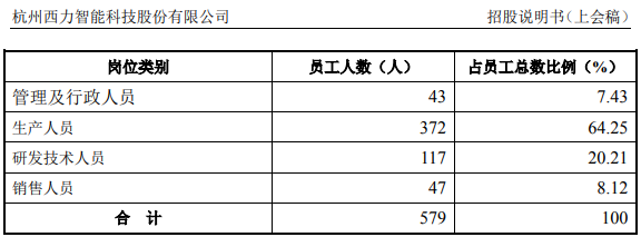不僅如此,根據招股書披露,西力科技2019年度的營業額為4.25億元,明顯低於同年萬勝智能5.68億元的經營規模。而目前,西力科技擁有的生產人員人數達372人,而萬勝智能則僅為238人,僅相當於西力科技的三分之二;同時,萬勝智能的研發及技術人員達155人,顯著多於西力科技117人的研發技術人員數量。
