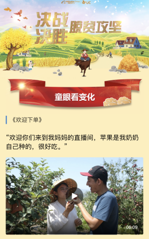 值得一提的是,2020年是脱貧攻堅的決勝之年,UC特別策劃《決戰決勝脱貧攻堅》、《我家的故事》等相關專題、原創策劃《今年大豐收》《看不夠的家鄉美》《網紅產品在這裏》《我的扶貧日記》等小視頻話題,通過話題的形式,激發廣大網友的創作力,藉助UC平台的廣泛傳播力,展示脱貧工作帶來的美好生活。