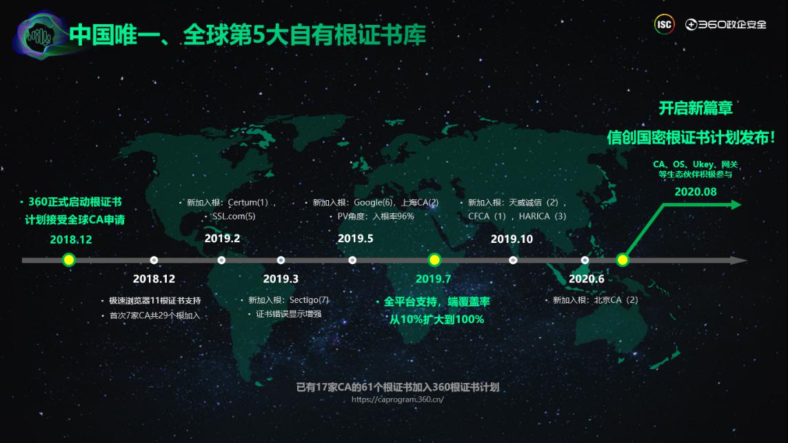 另一大亮點是360擁有中國唯一、全球第五大自有根證書庫,在保障我國政企用户網站訪問安全上更具話語權。