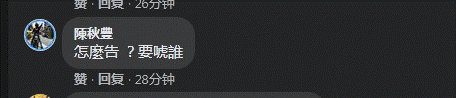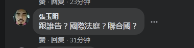 在社交媒體臉書上,對於吳釗燮的表態,有網友諷刺説,“講的好像很兇,誰會鳥你告不告啊”、“怎麼告?要唬誰”、“誰理你”、“跟誰告?國際法庭?聯合國?”