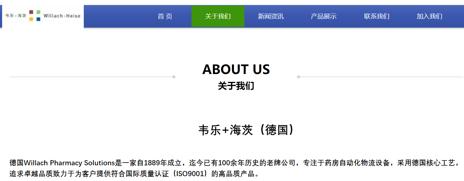 儘管韋樂海茨是健麾信息的控股子公司,並以納入了健麾信息的合併範圍,但是在韋樂海茨的官方網站 “關於我們”的介紹中,仍然突出的是德國Willach的背景,並強調“採用德國新工藝”;同時,招股書也披露目前韋樂海茨的核心產品B和H系列發藥機仍然使用Willach所擁有的商標