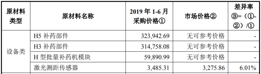 再從採購端數據來看,根據招股書第223頁披露,在2017年和2018年,健麾信息對Willach的採購金額佔比都在50%以上;儘管在2019上半年的採購佔比下降到了27.33%,但是主要原因是在H5補藥部件上的採購金額大幅下降所致。但從採購的本質來看,H型補藥部件是健麾信息生產必需的部件,且招股書中也提到這些部件“無可參考價格”,也即只有Willach一家能夠提供且健麾信息也只能接受Willach的報價。