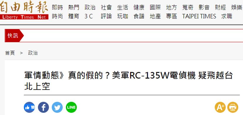 綠媒爆美軍電子偵察機今疑似飛越台北上空,自己都問“真的假的”